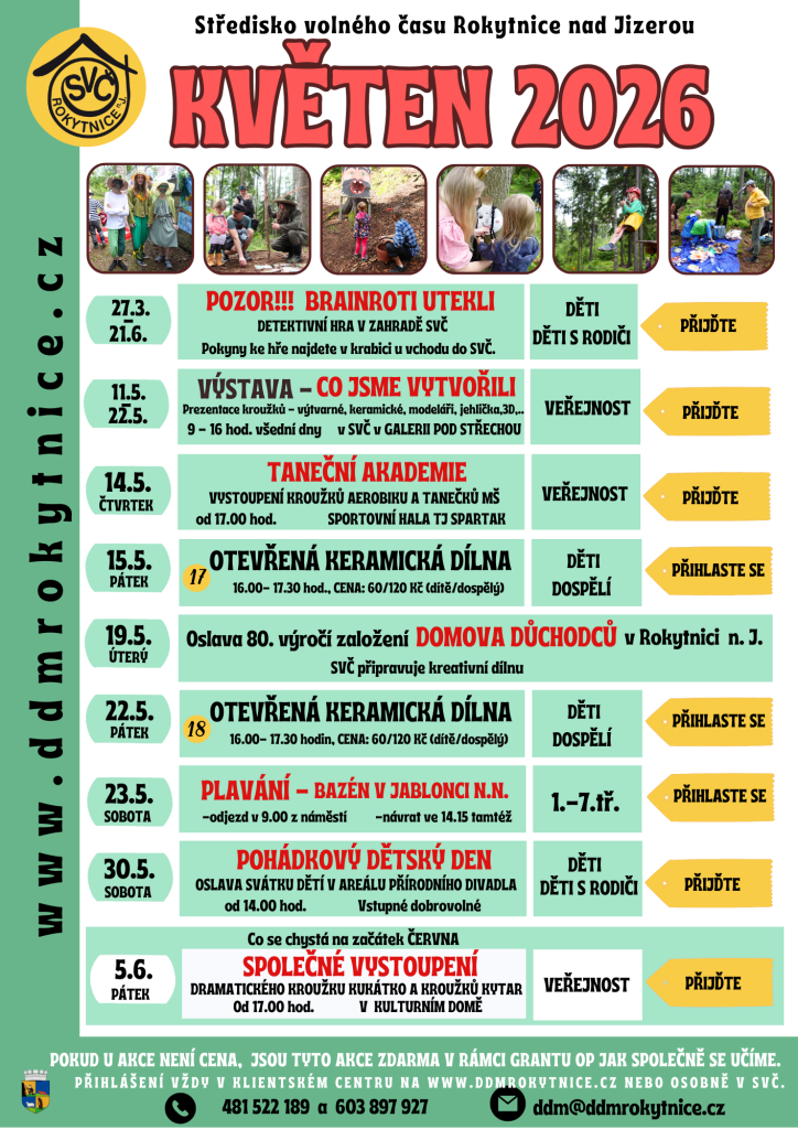 03.08.2026 Tábor je určený pro děti po ukončené 1. třídě ZŠ. Děti tento týden prožijí hlavně venku, v přírodě, na výletech a to nejen v Rokytnici a jejím okolí, ale vydáme se i do vzdálenějších míst za poznáváním. Na cesty se budeme vydávat hlavně pěšky, využijeme i autobus nebo vlak. Začínáme v pondělí 3.8...